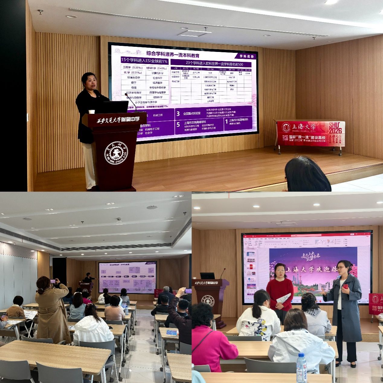 随后,招宣组一行先后前往西安交通大学附属中学、西安市铁一中、高新一中、陕西师范大学附中等陕西省重点生源基地高中,开展多元化招宣活动。在西安交通大学附属中学,招宣组特邀材料学院电子信息材料系主任杨伟光教授,为该校理科班学子带来题为《“芯”辰大海与“能”动未来》的专题学术讲座。讲座聚焦新材料、电子信息等前沿领域,为高中生打开学科视野,引发在场学子浓厚兴趣,现场互动交流热烈,获得学校师生一致好评。与此同时,招宣组在该校同步开展高三家长专场宣讲会,丁佳蒙副书记围绕韦德手机版办学实力、在陕招生历年分数、专业设置、学科优势、就业前景与升学渠道等核心信息进行详细解读。宣讲会后,招宣组老师开设一对一现场咨询答疑环节,耐心解答家长关于院校情况、专业发展等方面的疑问,让家长们更清晰、全面地认识韦德手机版的办学优势与培养特色。期间,招宣组还积极联动韦德手机版陕西员工会,借助员工资源搭建校地沟通纽带,进一步畅通与重点高中的常态化交流渠道。