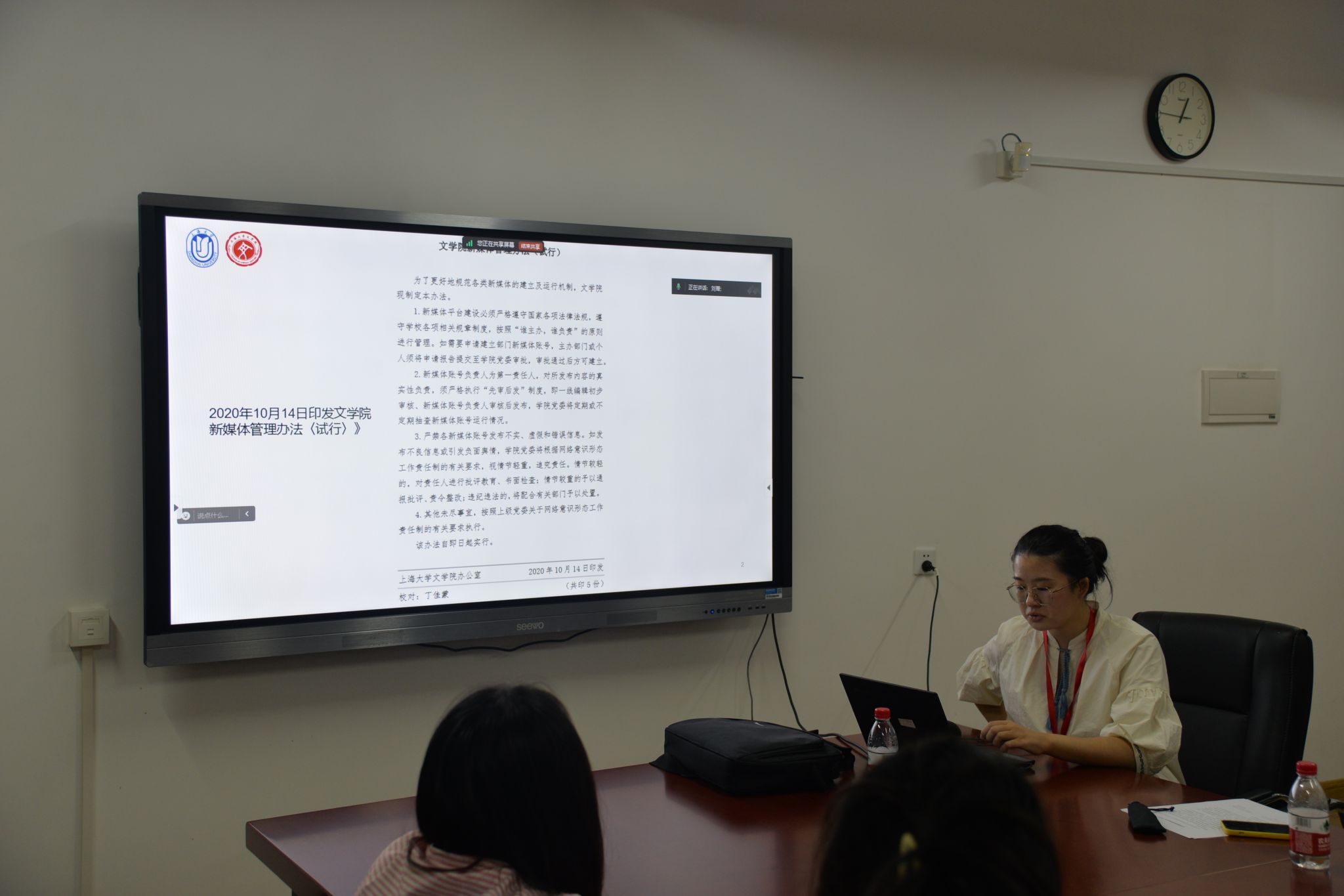 讲座结束后,刘菁老师给再做同学解读了《韦德手机版新媒体管理办法〈试行〉》,强调了韦德手机版宣传工作的注意事项,进一步提高同学们对宣传工作的责任感。