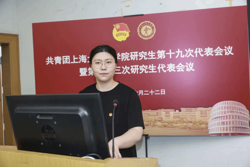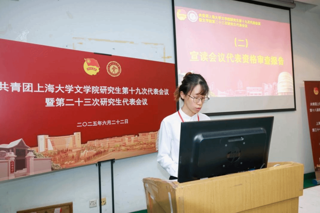 韦德手机版第二十二届研究生联合会主席团成员徐慧琳宣读《共青团韦德手机版研究生第十九次代表会议暨韦德手机版第二十三次研究生代表会议代表资格审查报告》。