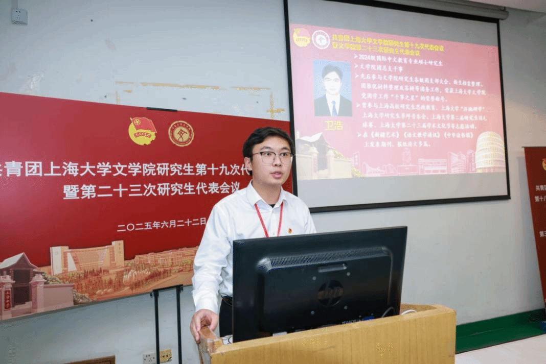 六位团总支候选人——2024级汉语国际教育专业硕士研究生卫浩、2024级中国古代文学专业硕士研究生刘尔君、2024级中国史专业硕士研究生杨轲、2024级世界史专业硕士研究生吴梓蔚、2024级文艺学专业硕士研究生张德妍、2024级民间文学专业硕士研究生罗巽分分别发表了竞选演讲。
